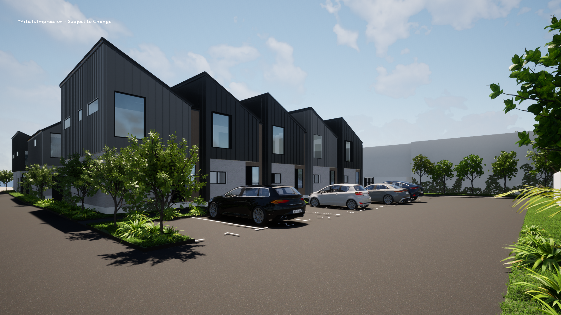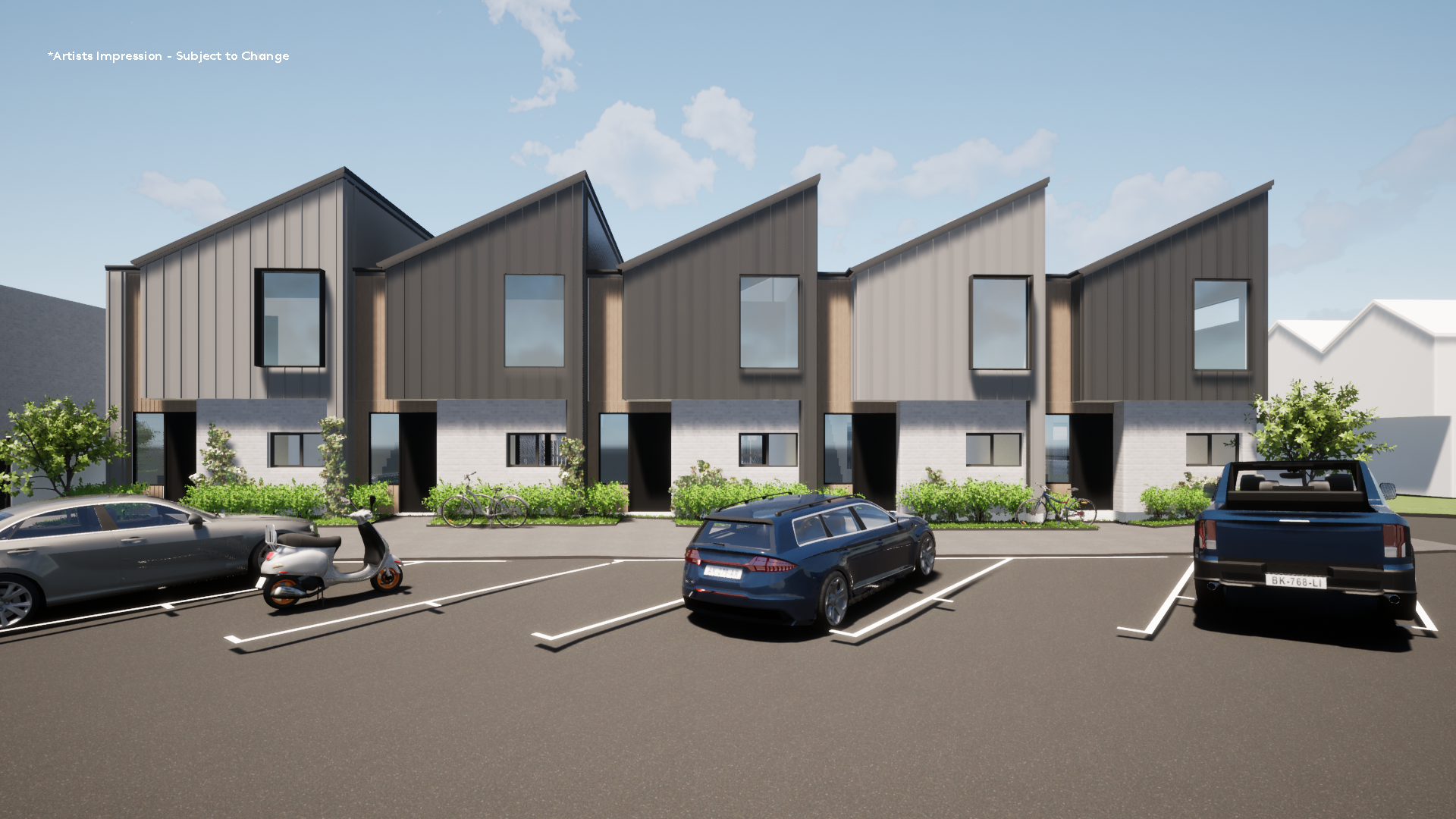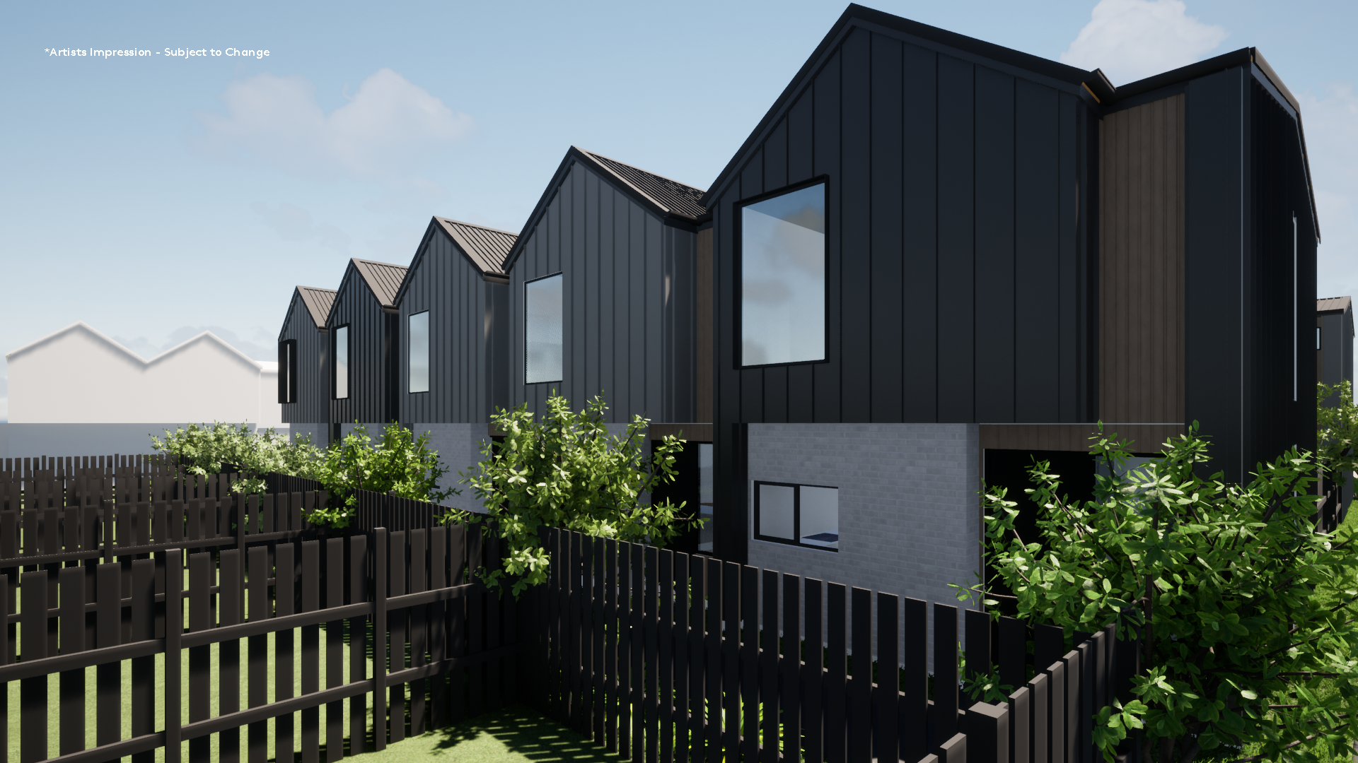 Wairakei Road, Bryndwr presents 15 modern townhouses designed by Figure & Ground, next to the Wairakei Road / Greers Road shops.